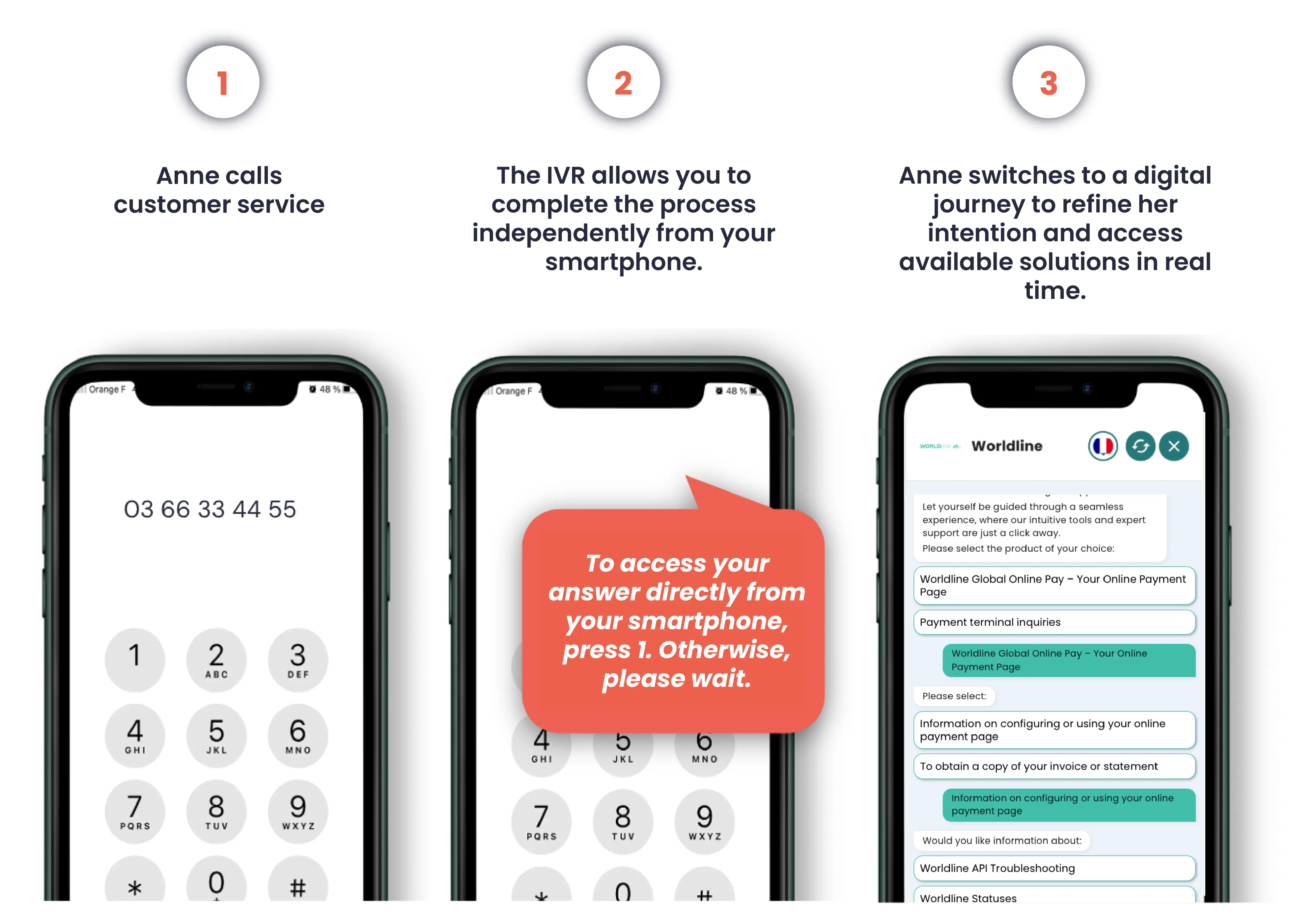 In the banking sector, AI is used to automate routine requests such as tracking a transfer, reissuing an IBAN, or updating an address. A Visual IVR, for instance, allows clients to easily select the reason for their call directly from their phone before even being connected to an advisor. This reduces misrouting and optimizes handling time. Once the request is identified, an omnichannel AI agent can automatically process simple cases or forward more complex ones to an advisor, with all the context already gathered.