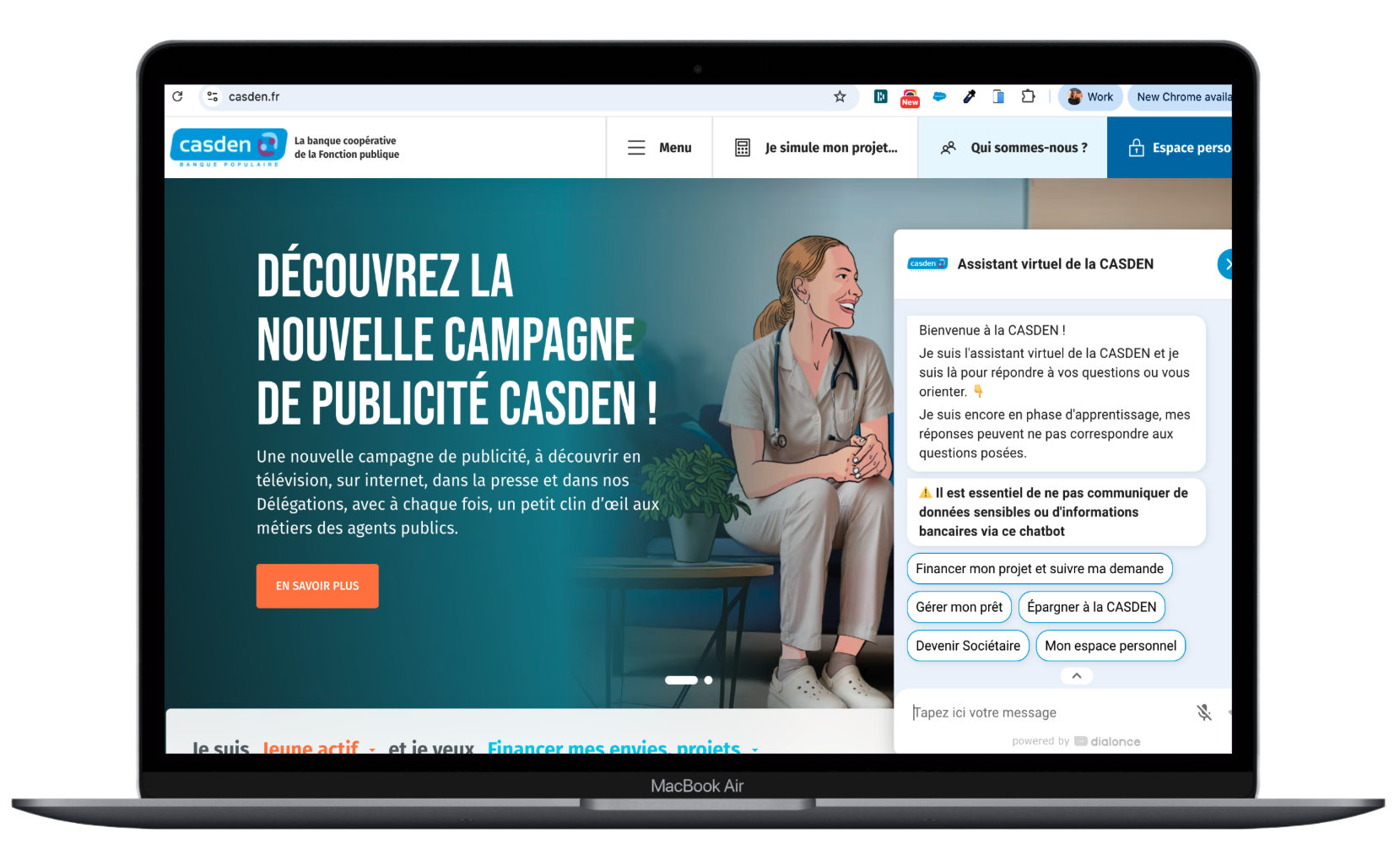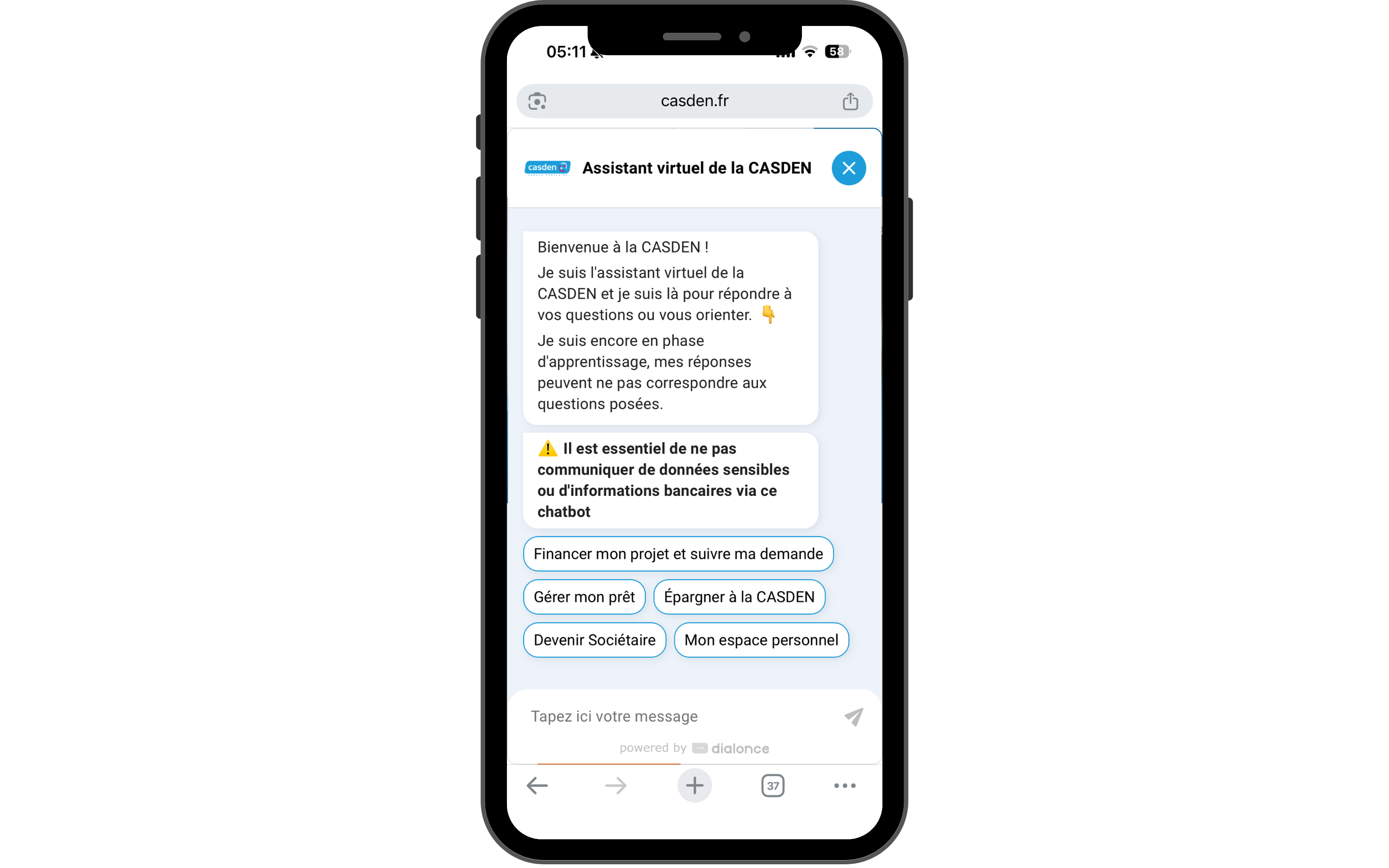 La CASDEN Banque Populaire a déployé l’agent IA omnicanal de DialOnce afin d’orchestrer l’ensemble de ses parcours de contacts digitaux. Accessible depuis les pages clés du site casden.fr, l’agent IA comprend le motif de contact, propose une résolution en autonomie lorsque cela est possible, ou oriente le sociétaire vers le canal le plus pertinent en conservant le contexte de l’échange.