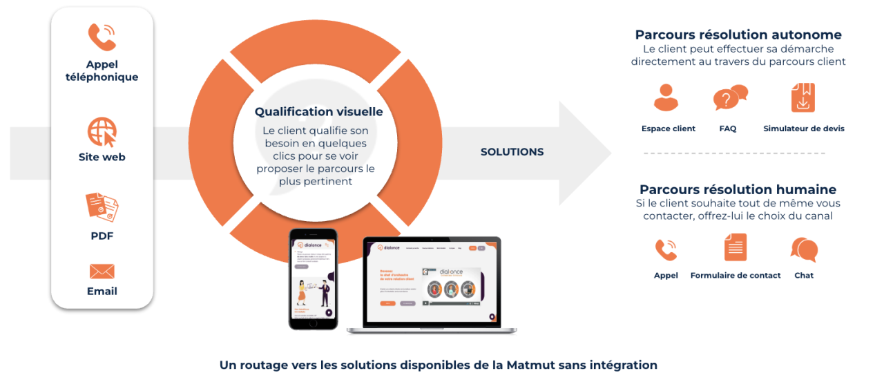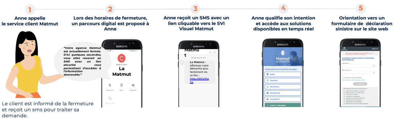 La Matmut a déployé le SVI visuel de DialOnce afin d’orienter les appels entrants vers des parcours digitaux adaptés et de proposer une alternative à l’attente téléphonique, notamment sur les appels non traitables.